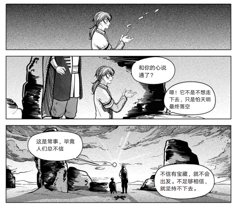 “当你想要某种东西时,整个宇宙会合力助你实现愿望。”就如同这个打动全世界读者的追梦故事映照着保罗·柯艾略本人的过往人生,牧羊少年追寻天命的故事也不同程度地鼓舞着漫画改编团队成员,加入这场创作之旅。