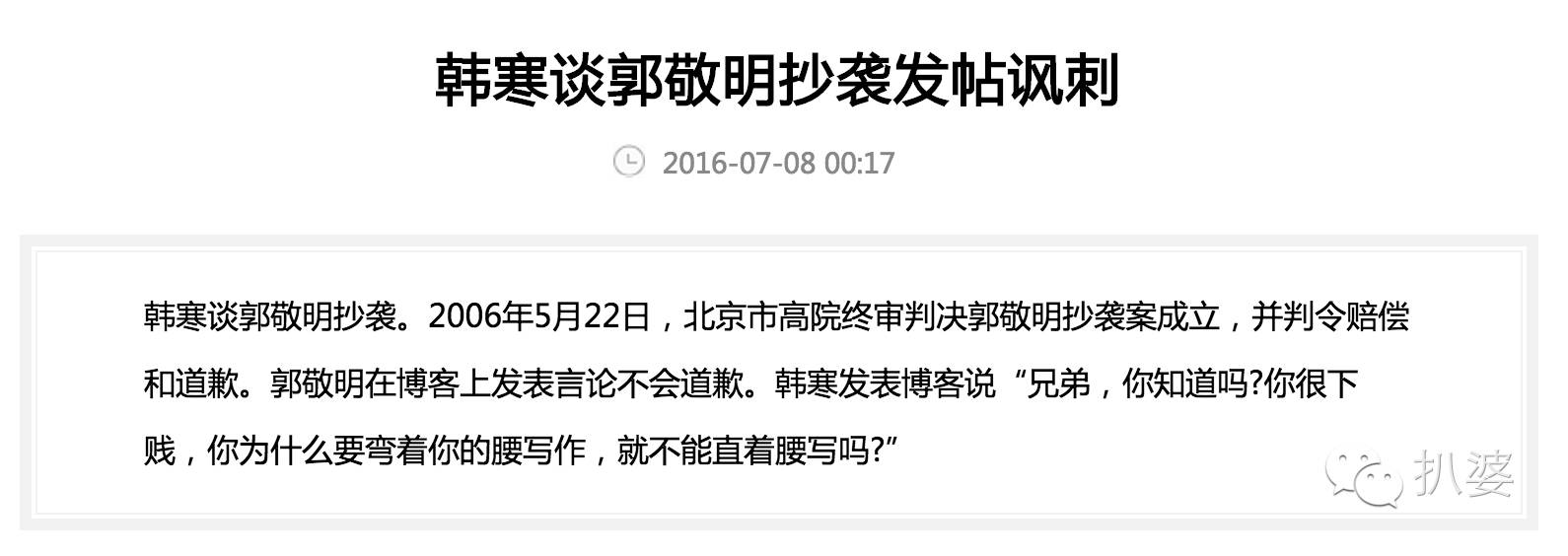 本来是奔着炮轰网络玄幻剧去的,但是偏偏就拿郭敬明来开刀。郭敬明的身高太有特征了,所以说到迷你作家,大家几乎都知道是他了。而且还不忘补刀“就是抄袭不道歉,比你还迷你那个”。