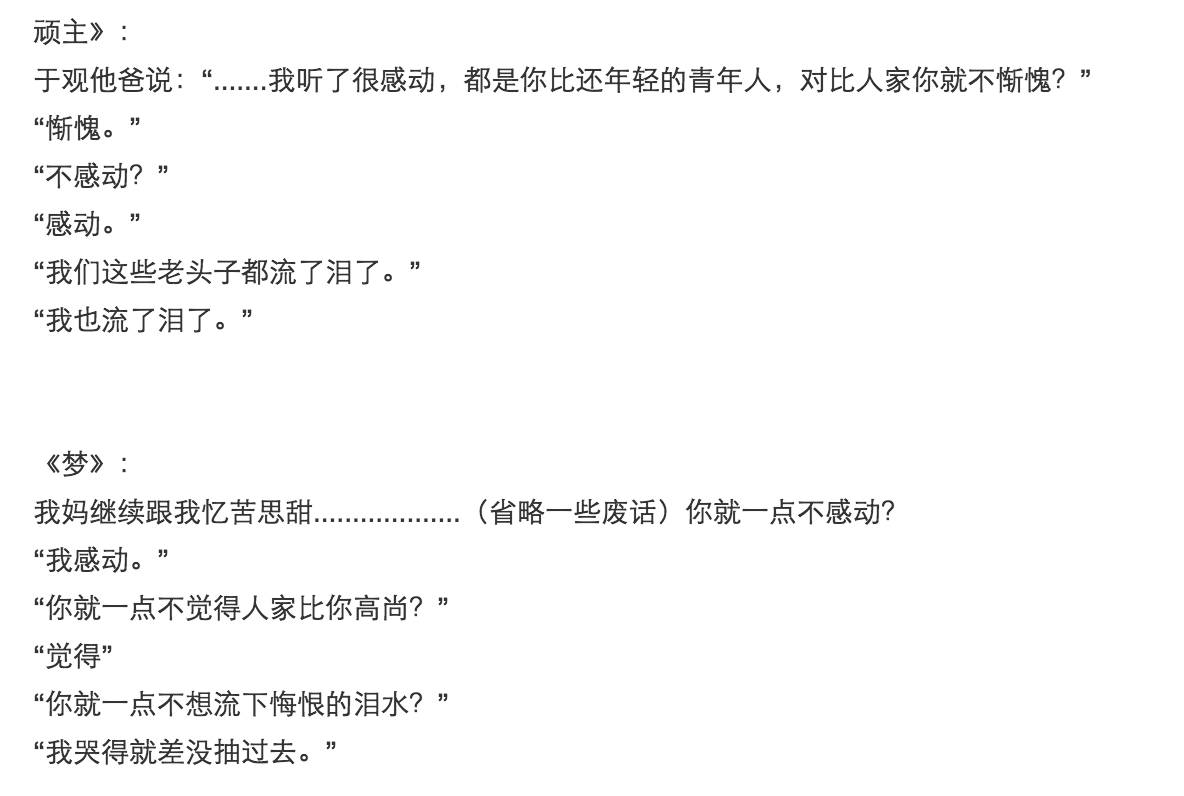 还有网友把《顽主》里的部分桥段拿出来和《梦里花落知多少》做对比: