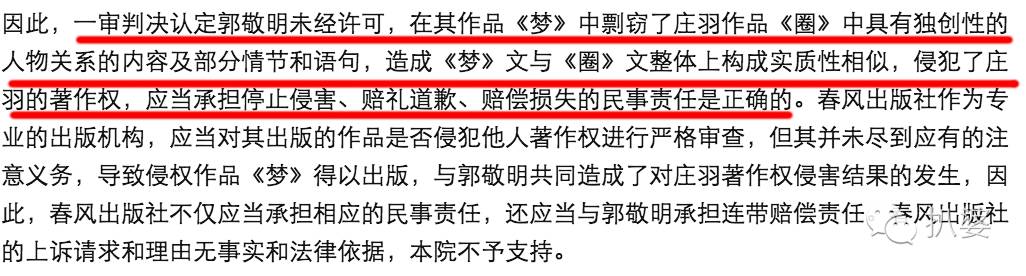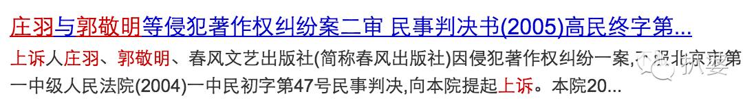 庄羽就很有骨气地跟郭敬明打官司,这场官司整整持续了三年,换了三个律师,终于判决胜诉。