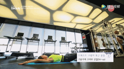 ▲利用腹部的力量支撑身体,让身体向上坐立,第一次做话,一组做10回就可以了,因为这个动作比较吃力,可以根据自身的体力调整每组的数量和组数。
