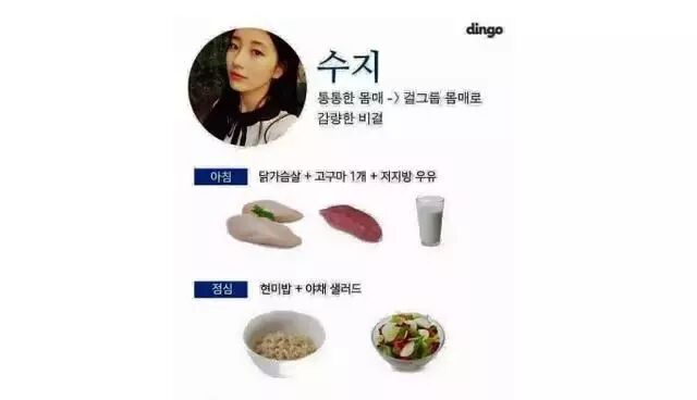朴宝蓝的食谱则健康许多了,是最值得借鉴的。崇尚健康减肥的她食谱也是营养满满,配合运动才能更快瘦身哦。