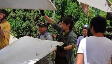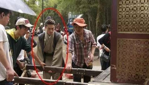 比如在拍戏之余,帮忙打光、帮忙举麦克风↓