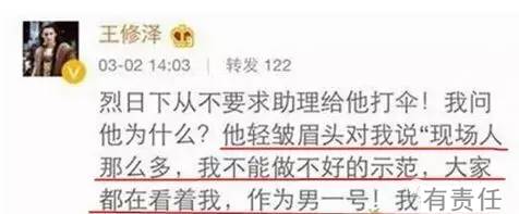 从不会招呼助理干这干那,宁可自己晒着也不用助理在一边撑伞。