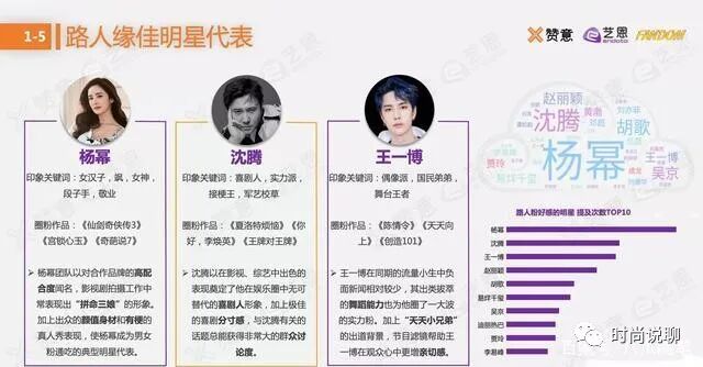 路人缘俱佳的明星代表榜单出炉:杨幂、沈腾、王一博三人笑傲榜单前三名,用数据说话,用实力证明,顶流不是说说而已。王一博在同期出道的艺人中正向新闻居多,负面新闻较少。其出类拔萃的舞蹈能力也为他圈了一大波“实力粉”。加上在《天天向上》这档以传承中华礼仪文化和倡导社会公德为主旨的文化类节目中“天天兄弟”的主持人背景,使得他在观众心中更增亲切感。