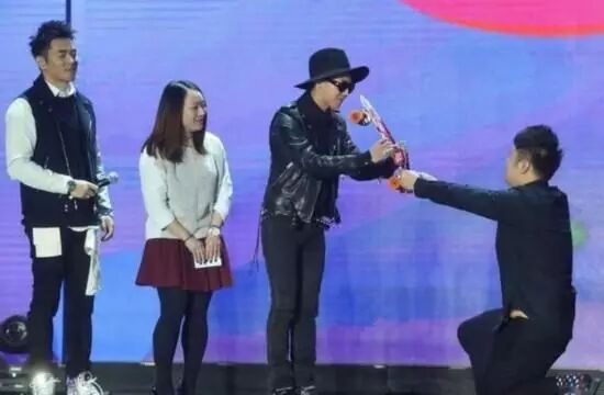 随后在某颁奖礼上,杜海涛在为韩国偶像天团BigBang队长权志龙颁奖时单膝下跪,语无伦次,恳求与偶像合影。