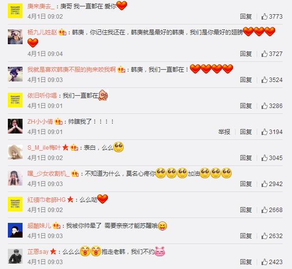 李灿森、曾一竣、王祖蓝没反应,韩庚微博下都是“心疼韩庚”的留言,