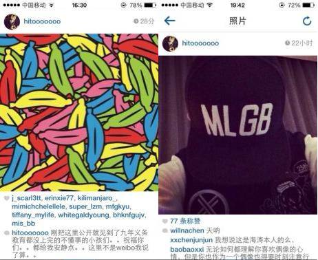 但是万万没想到,他却在ins上像着了魔一样刷屏,先讽刺网友们不上ins只懂微博,说ins是自己的地盘,想说什么说什么,同时用一张戴着知名品牌“MLGB”帽子的照片隐晦地爆了粗口。