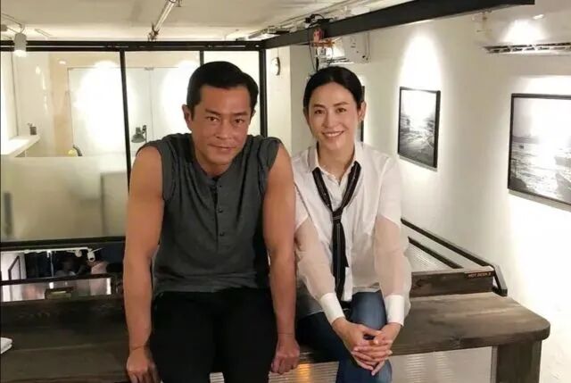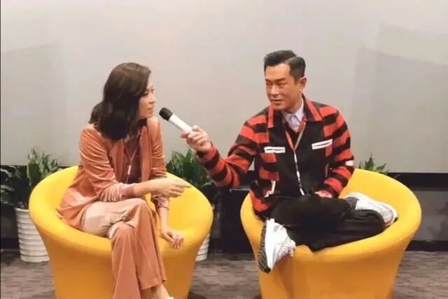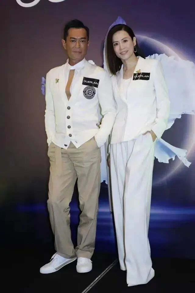 这样有一身橙色的西装套装也很帅气了啊,而且颜色好看所以显得特别的年轻呢。旁边的古天乐也是很容易让人注意到的了,非常的帅气,男的帅女的美这个画面太甜了吧。