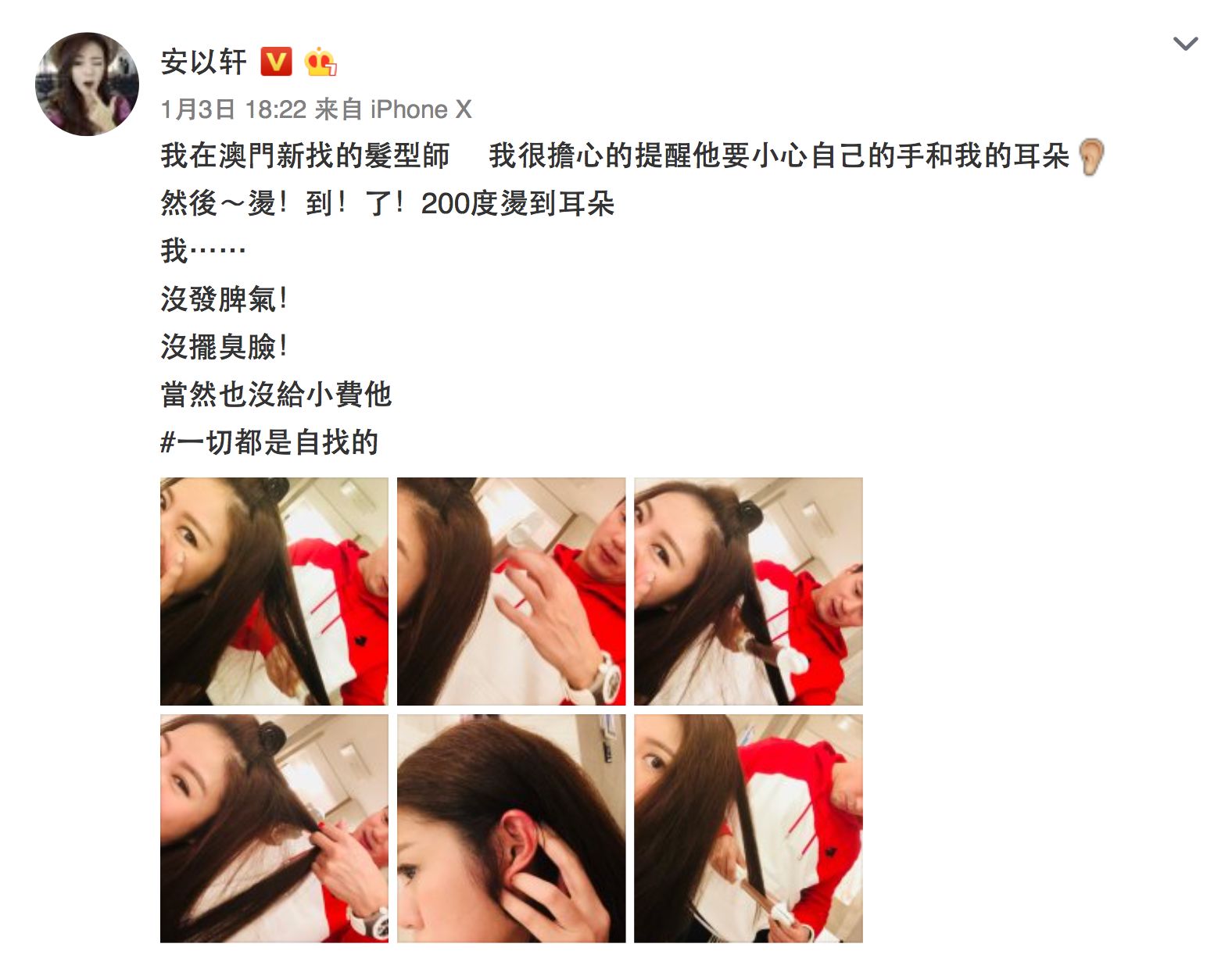 去年安以轩也结婚啦,对方是澳门德晋集团总裁。前段时间还在微博秀恩爱,很幸福↓