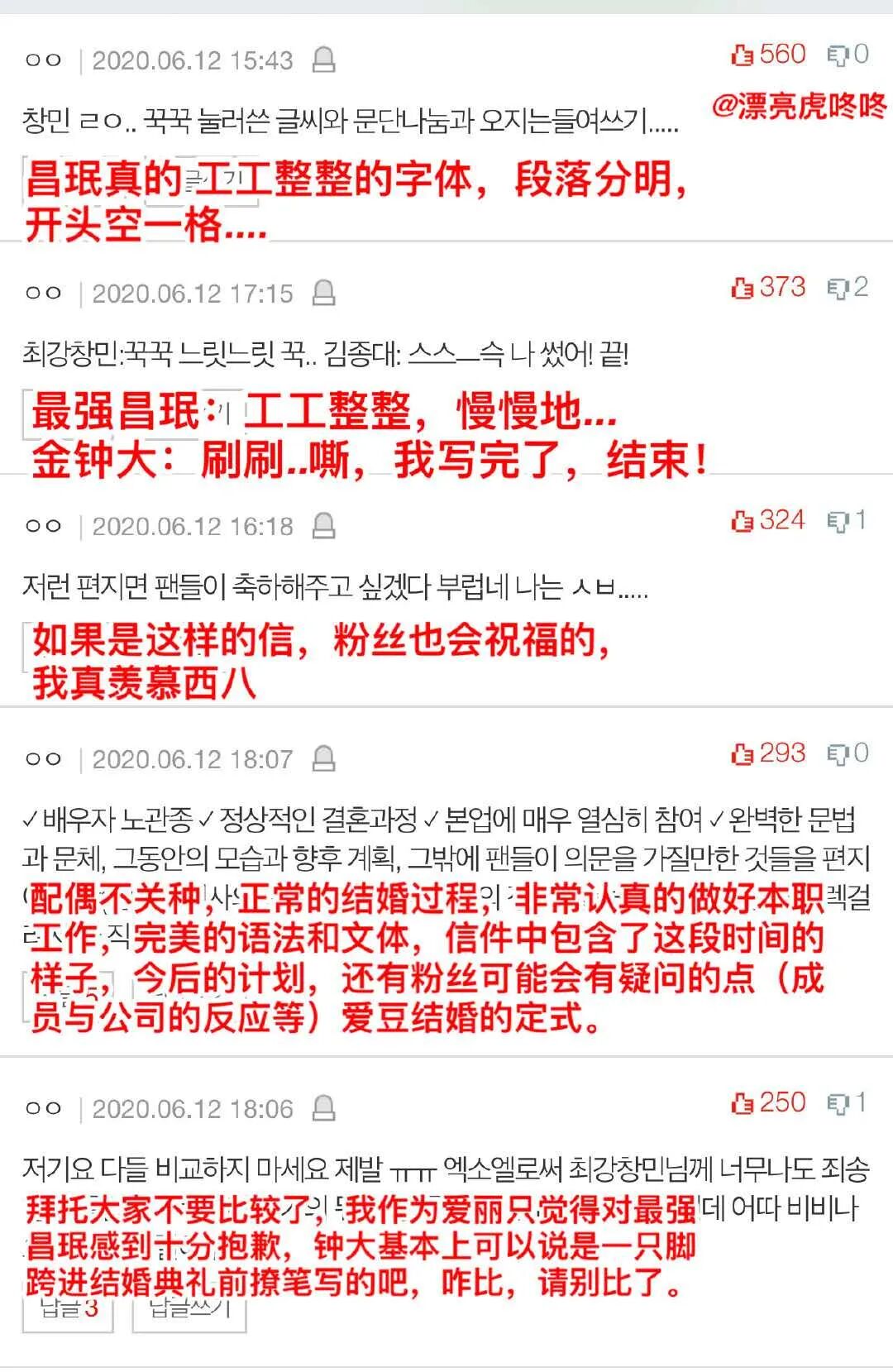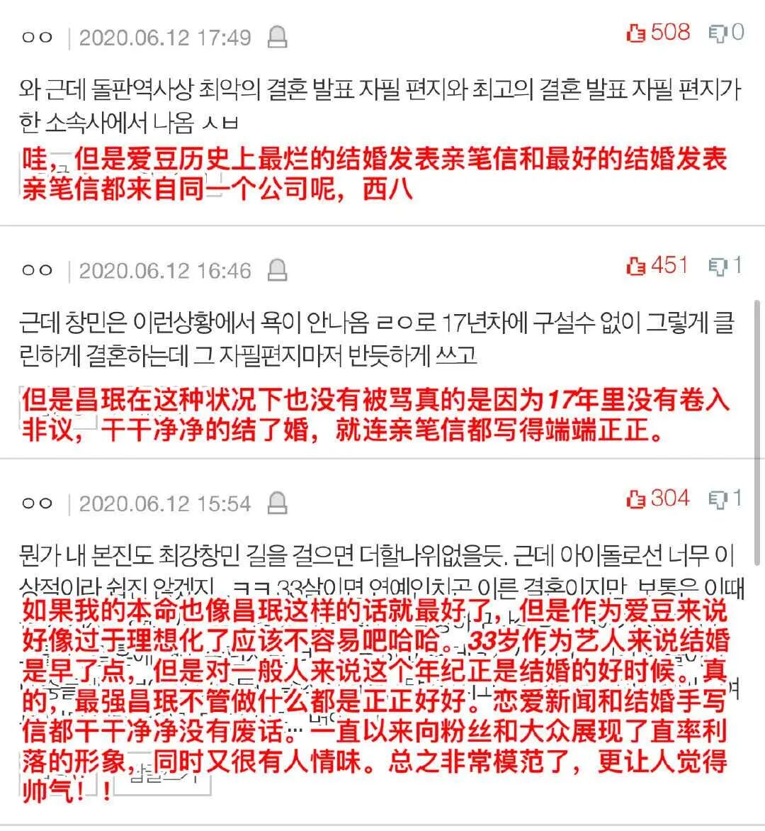 但是韩网也来了一波拉踩,拿沈昌珉结婚这件事和同公司的CHEN相对比,意思是CHEN连手写信都不好好写啥的。