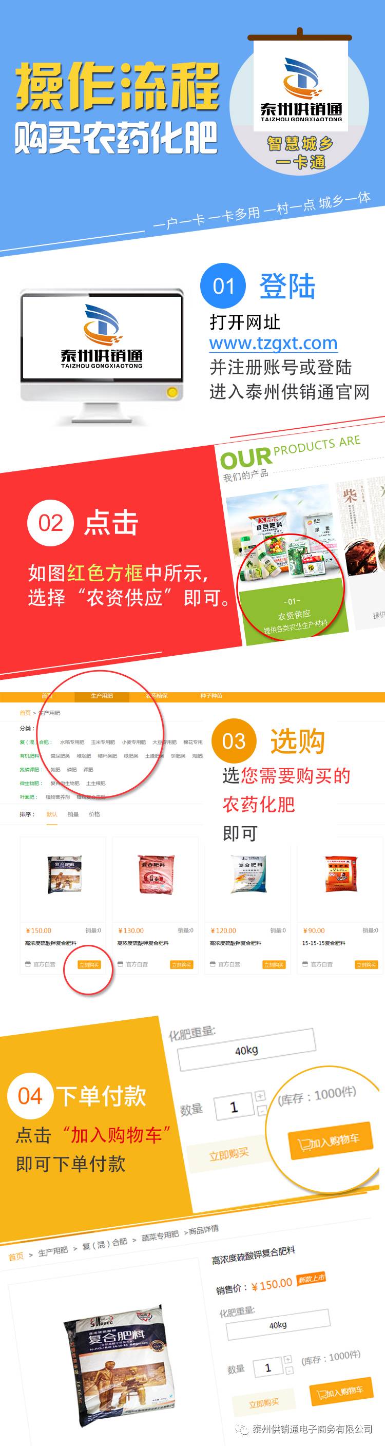 泰州供销通电子商务有限公司联合农资供应商为种植(养殖)大户提供农资零差价配送服务,以服务“三农”、发展“三农”为指导方针,为种植(养殖)大户解决实际困难。
