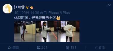 一周前江映蓉在自己微博上晒出了自己健身跳舞两不误的照片。