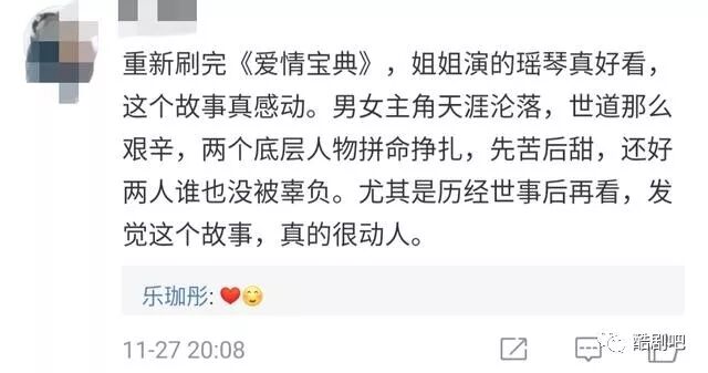 有粉丝在下面评论最近又重新看了乐珈彤演的《爱情宝典》,很为她扮演的角色感动,乐珈彤亲自回复了他一个爱心和一个微笑。