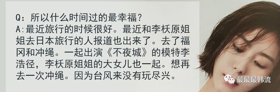 金宥真:最近和李瑶媛姐姐一起去了福冈和冲绳,旅行的时候觉得非常非常幸福,下次有机会还要去。
