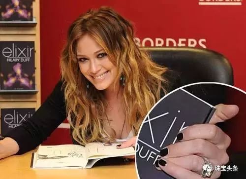 希拉里•达芙 (Hilary Duff)手上的这枚戒指是她的冰球运动员男友迈克•考姆瑞 (Mike Comrie)送给她的,14克拉的钻戒有100万美金之高。