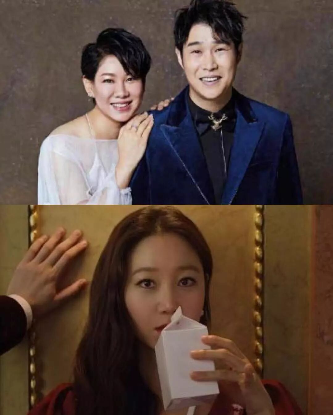 圆圆的眼睛,圆圆的鼻子,圆圆的脸,就连这两张照片的角度都差不多。谢娜可能在韩国还有一个失散多年的小姨子。