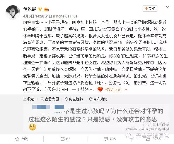 伊能静47岁怀二胎:希望给大龄妈妈更多体谅 港台女星 2016-04-08 08:43:16 166 创作不易,用心坚持,欢迎请BaGua喝几杯爱心咖啡!打赏并支持本文 打赏并删除本文 点击上方“公众号”可以订阅哦!4月6日,刚刚怀上二胎的的伊能静在微博上写下高龄产妇的不易,作为一个47岁的产妇,她呼吁大家关注高龄妈妈,也提醒高龄孕妇注意保护自己的身体,保护肚里的宝宝。这封信缘于一位网友的提问:不是生过小孩吗?为什么还会对怀孕的过程这么陌生的感觉?伊能静回答:回答闺蜜~~小王子现在十四岁加上怀胎十个月,那么上一次的孕期经验就是近15年前了。那时代谢好、年轻,还一直拍戏“贫穷贵公子”拍到七个多月。这一次怀孕时隔十五年,成了超高龄妈妈,很多人女性机能都已衰退,能怀孕本来就充满奇迹恩典,而高龄的生育充满风险,身体的状况与15年前完全无法相比。我很乐观喜欢报喜,不表示我没有高龄孕期的恐惧,我只是希望如果我可以,很多二胎孕妈一定也不要放弃。也许最简单的比喻是,你30岁的生理期,和你47岁的生理期会一样吗?问这问题的都是年轻女性,希望你们给大龄妈妈更多体谅,因为有一天我们的年龄你也会经验,今天你对他人的体贴,会是日后他人不嘲笑你年老珠黄的原因。加油!大龄妈妈,我所面临的外在质疑嘲讽。的眼光,也许妳也在经验着,但只要孩子知道你深爱着他(她),感恩他(她)的到来,这一切就微不足道。今天台北艳阳,一切都好~。天津爱维医院产科主任刘振华表示,正像伊能静在微博上所写的那样,47岁的身体是不能和30岁的身体素质来相比的,高龄产妇一定要注意以下情况,在正规的产科医院进行产检,随时关注自己的身体健康指数。爱维医院产科具备先进的产检仪器和专业的产科专家团队,能为孕产妇制定符合自身情况的孕产期保健计划,此外医院设有国家公共营养师,可为孕产阶段的女性制定营养饮食食谱,健康备产,预防过度进补或营养不良的发生。— 国家公共营养师 任万奎制定营养计划,为孕产妇提供营养点餐服务。预防妊娠高血压、糖尿病在医学角度来说,高龄产妇的确需要获得更多的关注和照顾。随着年龄的增长,高血压、糖尿病等疾病的患病率本就是高发态势,再加上妊娠的因素,身体的新陈代谢发生变化,这类疾病的患病率将会成倍增加,对于分娩和宝宝都有一定程度的威胁。高龄产妇易发早产高龄孕妇的子宫内环境相对较差,不利于胎儿的生长发育,在妊娠晚期容易发生异常,使胎儿提早出生。因此要提早做好分娩准备,了解胎儿发育情况。心理调节高龄产妇会遇到孕期的焦虑情况,各位孕妈要保持良好的心情,正像伊能静在微博中所写:运动、节制饮食、单纯生活、热爱家庭、喜欢分享、长保清醒、充满好奇、经济独立,我是一个高龄妈妈,但我要成为孩子永远的朋友,维持闪亮,思想比孩子跑前一点,却在他们身后守护,高龄不可怕,可怕的是心的僵化,思考的狭隘,心的封闭,我47岁,我喜欢我的年龄~。点击阅读原文 了解爱维产科 创作不易,用心坚持,欢迎请BaGua喝几杯爱心咖啡!打赏并支持本文 打赏并删除本文 感谢您的支持鼓励,我会继续努力的!文章地址:用户邮箱:打赏金额:USDT 请输入数字点击”去打赏“,即可进行打赏支持本文章哦 伊能静 发表评论