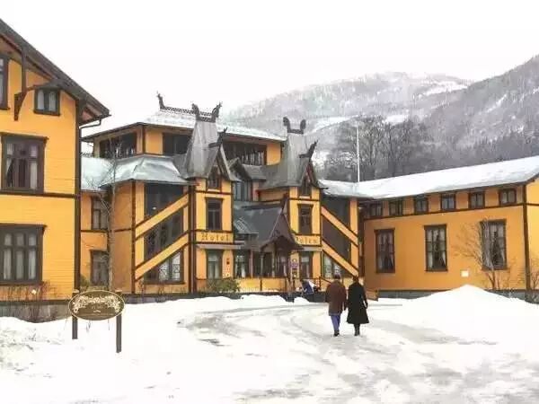在达伦,我们住的饭店就叫达伦饭店Dalen Hotel,黄橙橙的木建筑群在雪地中非常醒目,甚至还有些奇幻。