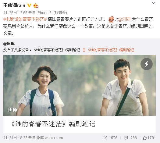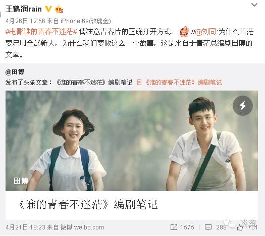 其中那个王鹤润,也就是撞脸郑爽的那个,应该是三人中最为人熟知的,因为当初拍了电影:谁的青春不迷茫。