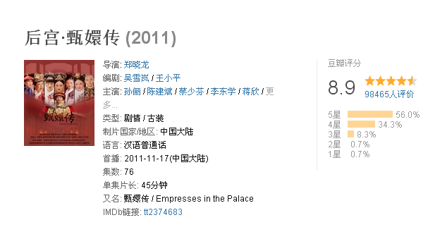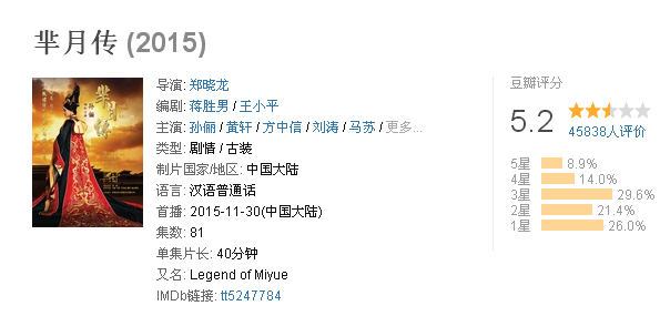 当然,芈月传播完,两剧对比后,网友的评论就不说了...直接上个豆瓣评分对比吧。