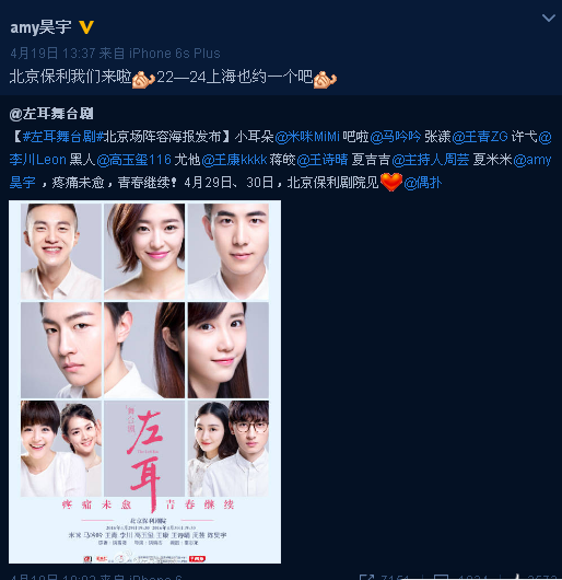 然后又演了一出畅销小说《左耳》改的舞台剧