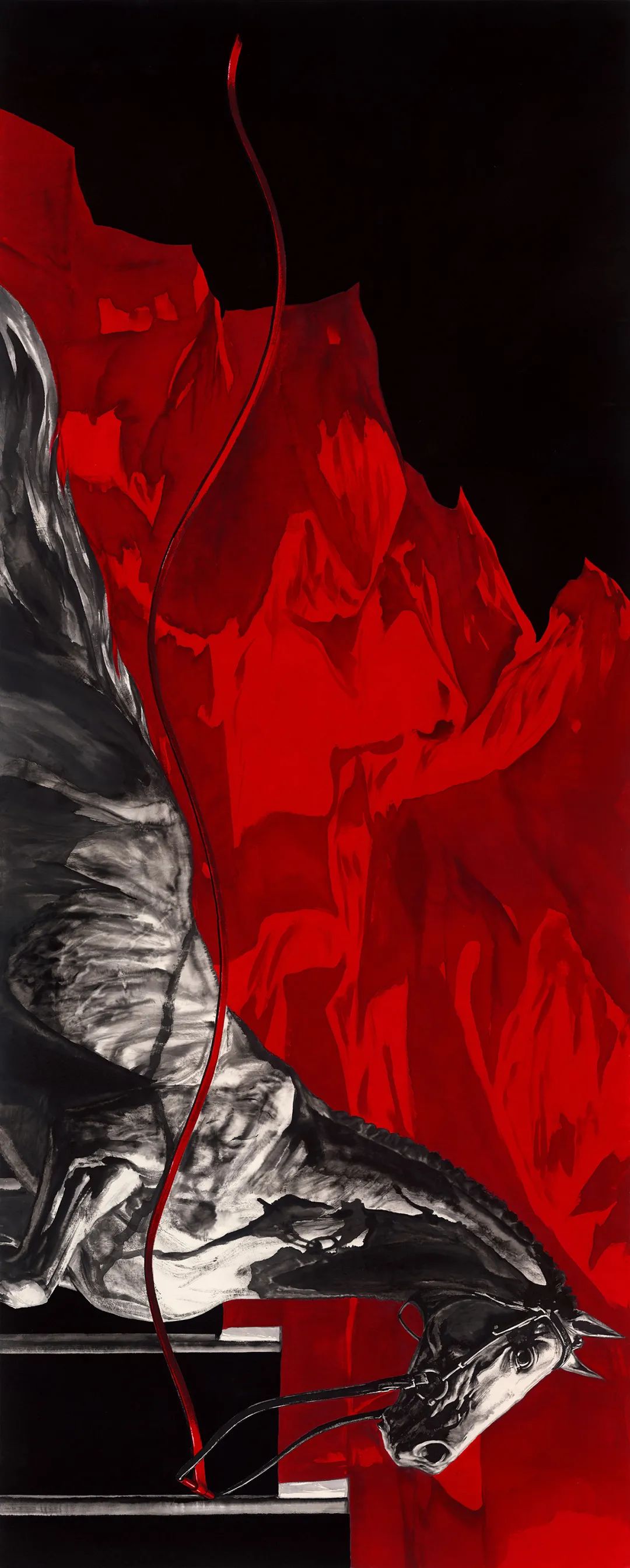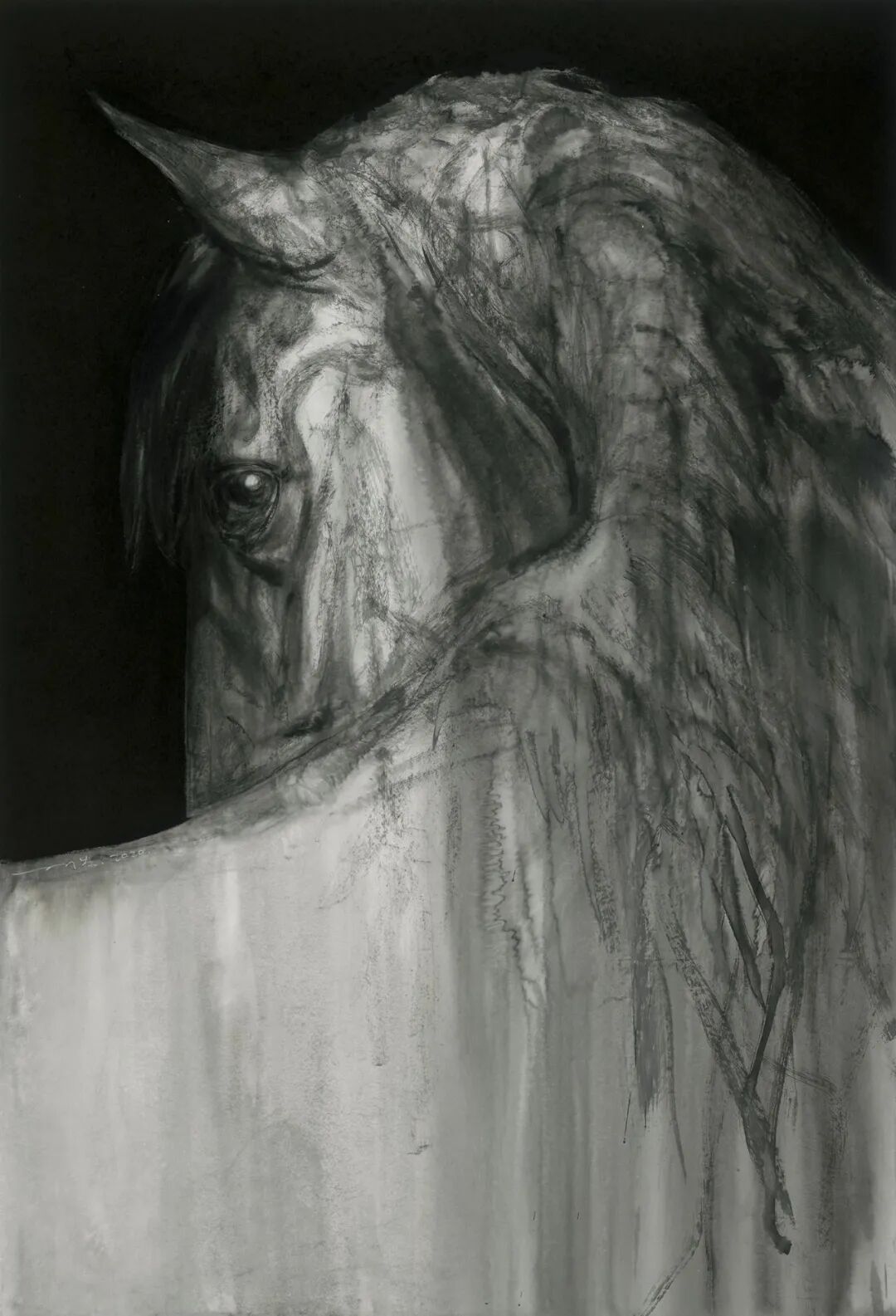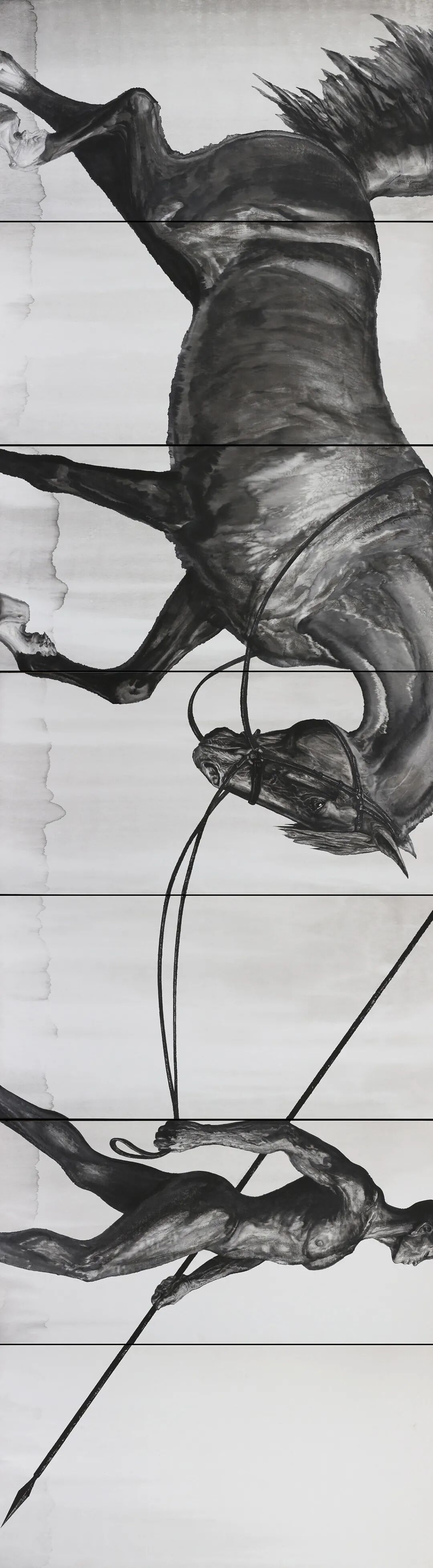 阴澍雨:后来你读研究生的时候,画了一些悬浮的人,现在画马,你的笔墨方式前后是一致的。以我的观察,你用墨比较肯定,湿重,控制严谨。这样的手法到研究生的阶段已经比较稳定了吗?