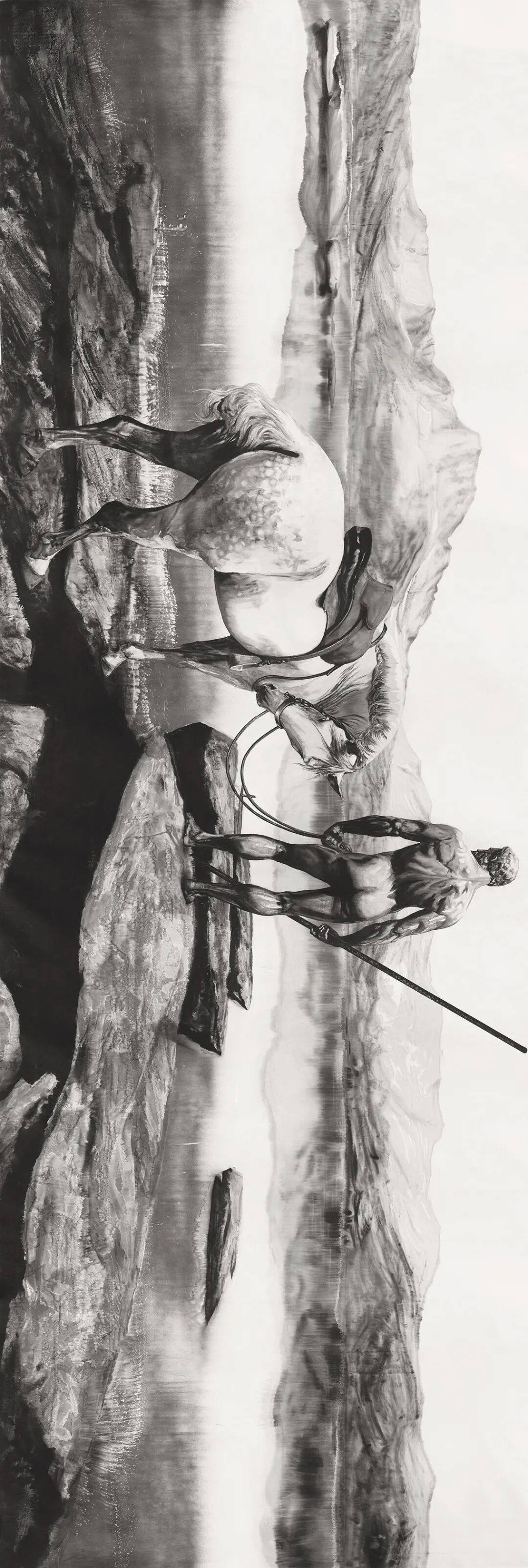 孙浩:能抡得开,能抒发的东西就特别多。为什么那幅站在水边的画都得和真马、真人一般大,石头也得和真石头一边大,因为它必须要大到那个份儿上我的情绪才能伸张得出来,才能身临其境。如果把它变成一张很小的画,感觉就不对味儿了,这不是要以小见大的事。