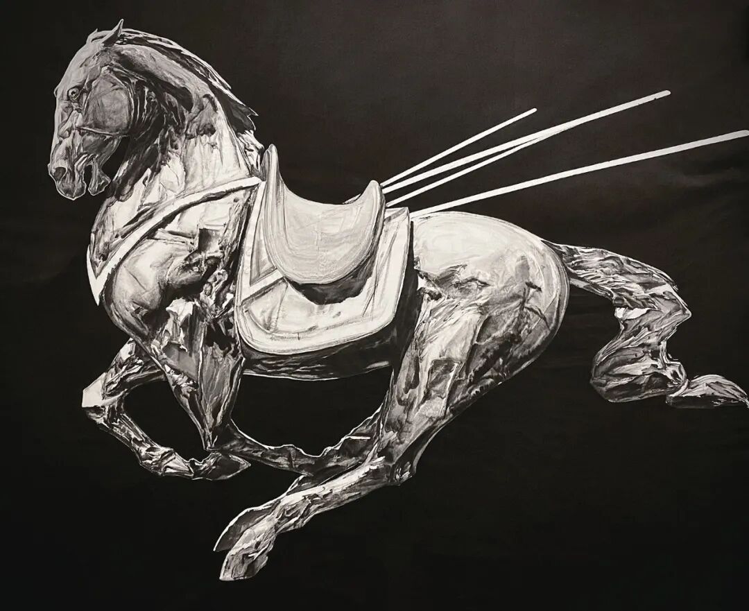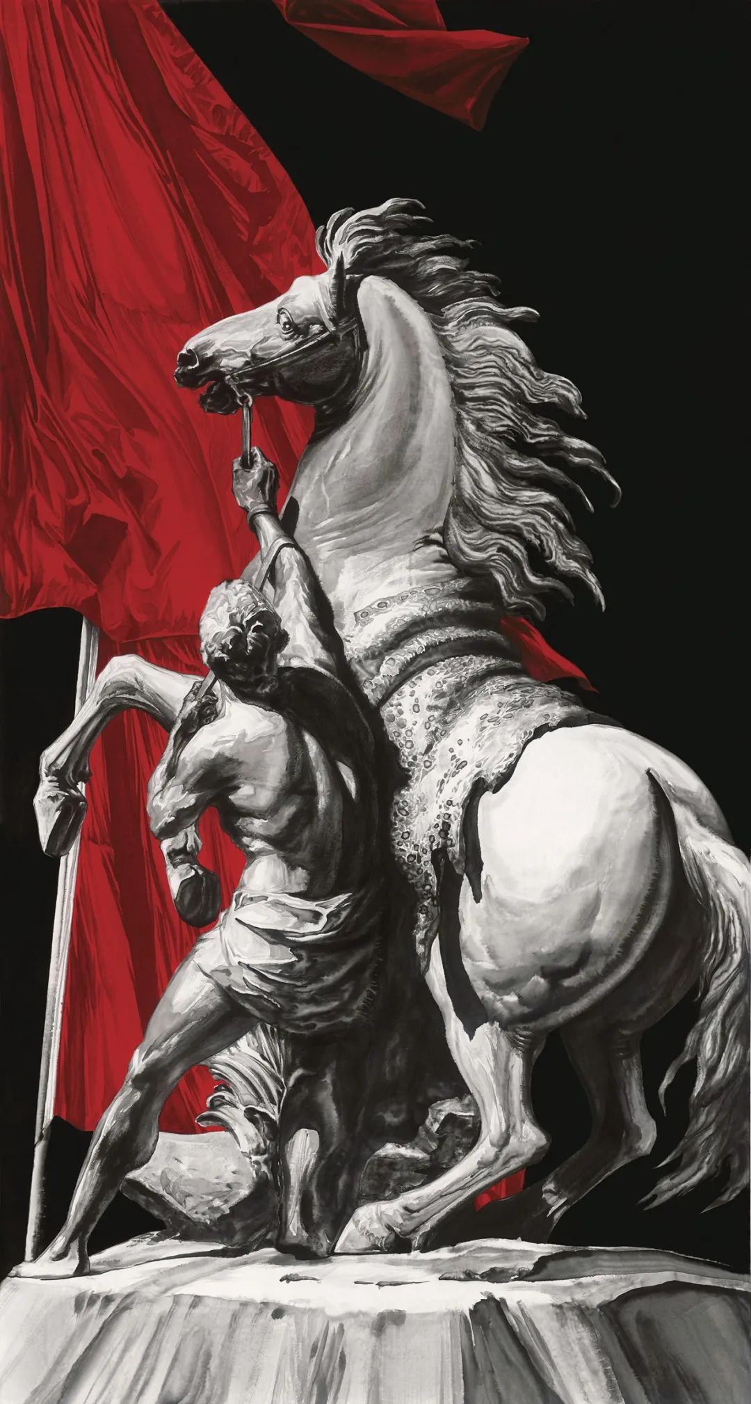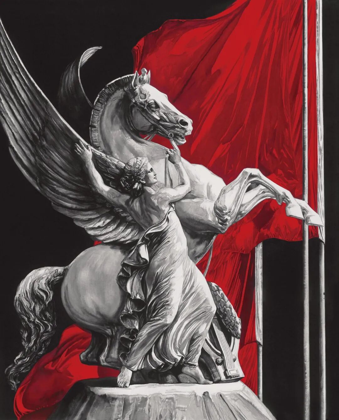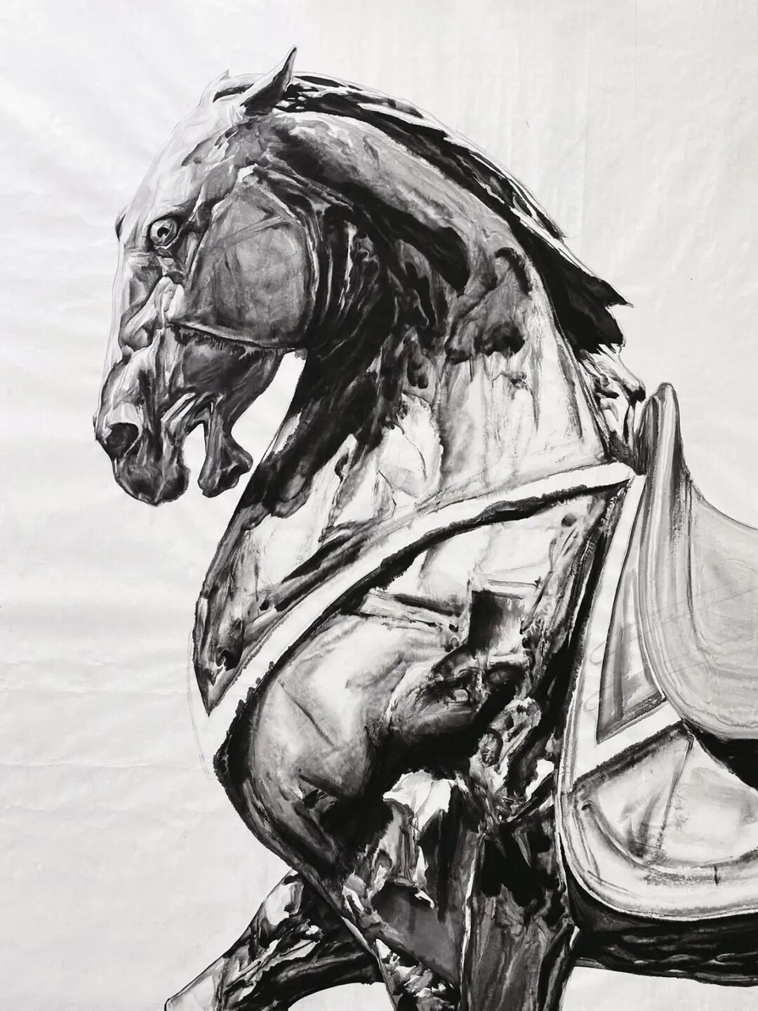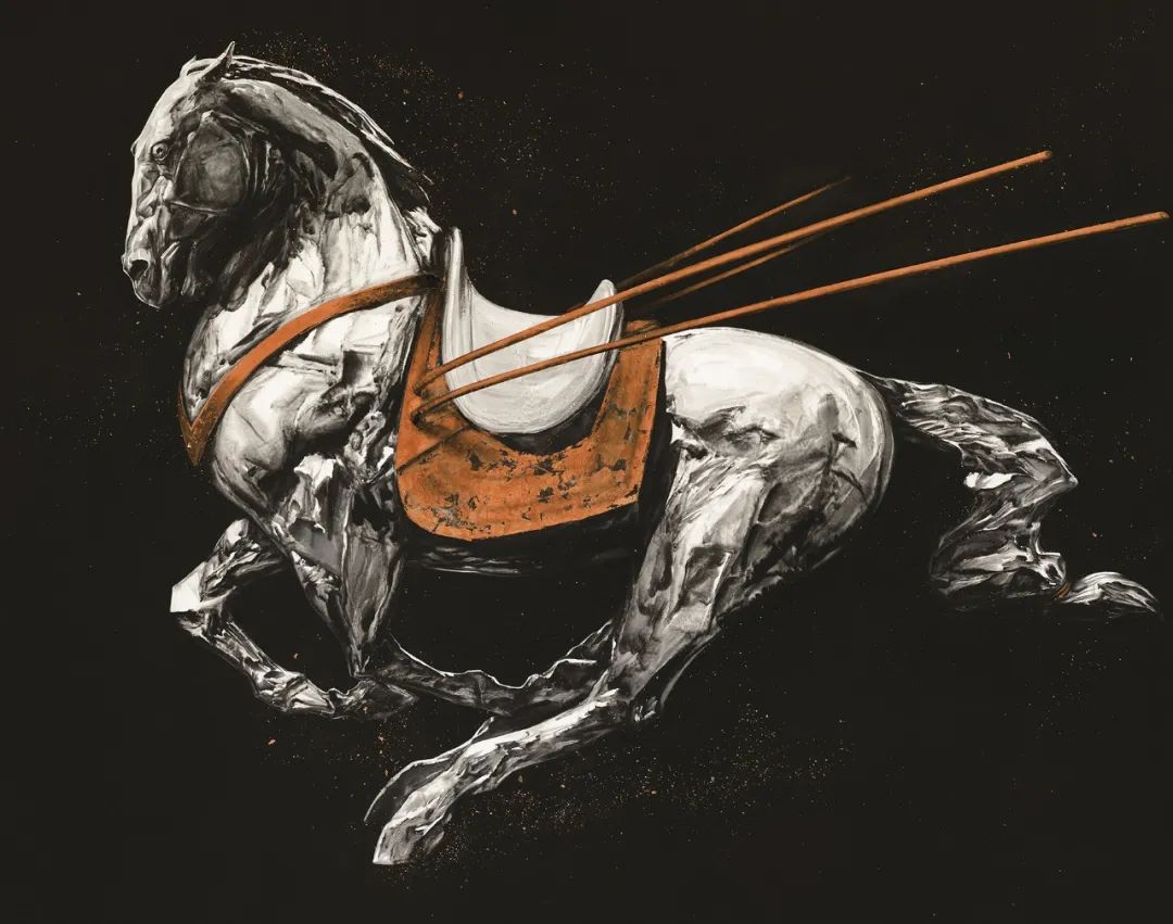 孙浩:我想让它更整合一些、平面一些。布褶也能传达情绪,如刚硬的褶和柔软的褶,布的质感也是为了马的气质,烘托画面气氛。