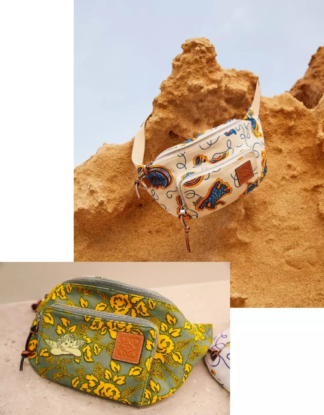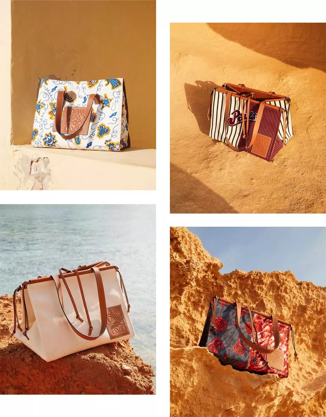 跟LOEWE固有风格形成鲜明对比的还有跟西班牙Ibiza小岛的著名时装店Paula’s合作的夏日限时系列。系列单品有着纯纯的度假风,并且多以帆布印花为主,其中就有一只小巧的腰包很吸睛。
