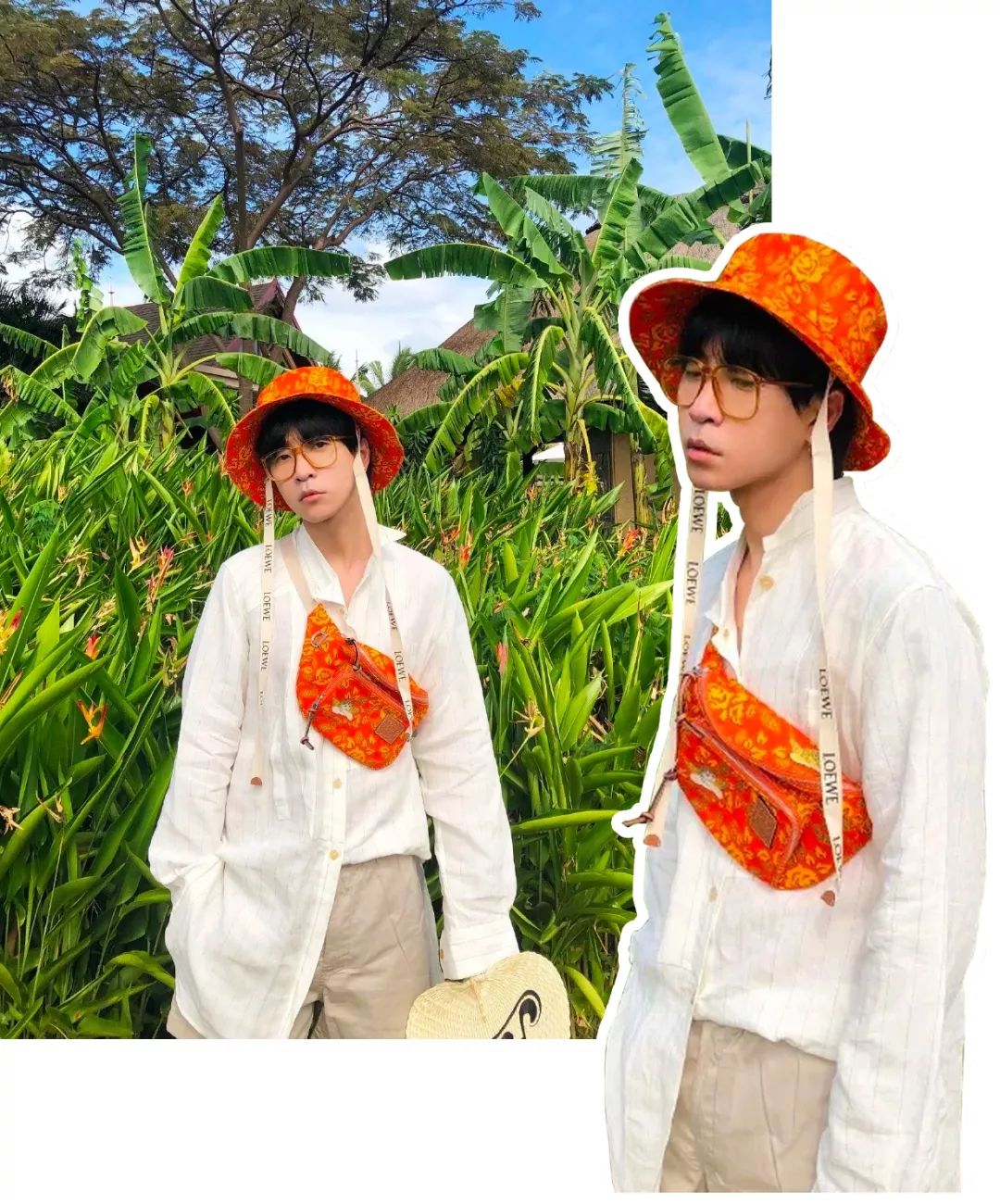 韩火火上身了其中的橘色款,同系列渔夫帽的上下呼应让整体look层次感极强,很具穿搭借鉴意义。