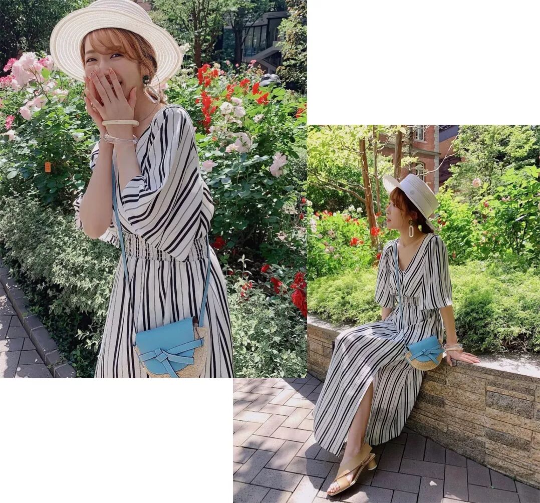 何穗在视频里分享的这套穿搭,是一件来自LOEWE的很小清新的竖条纹衬衫裙。