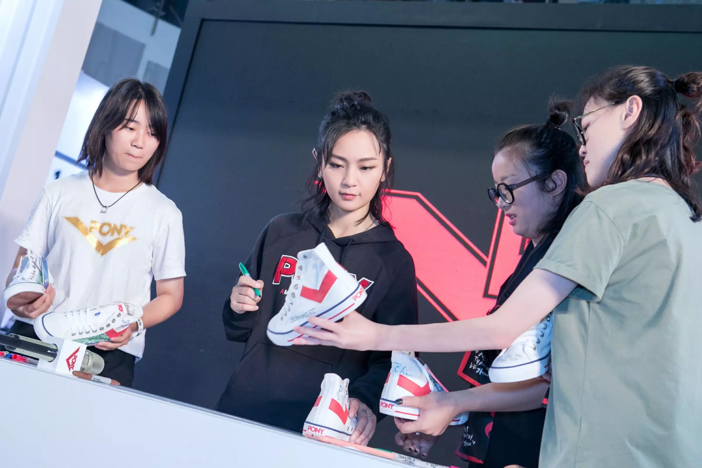 而 POP UP STORE 的中心位置,正是 PONY 本季首推的视觉形象与明星鞋款。周笔畅作为 PONY 品牌新一季代言人突破极限,挑战“音乐人”、“演员”、“潮人”、“摄影师”、“运动家”形象玩转多重身份,更集结了黄恺杰、Adrianne ho、白举纲、蔡辉、朱宦霖这五位不同领域的风云人物为 PONY 发声,以其独特的个性标识展现殊途同归的潮流理念。