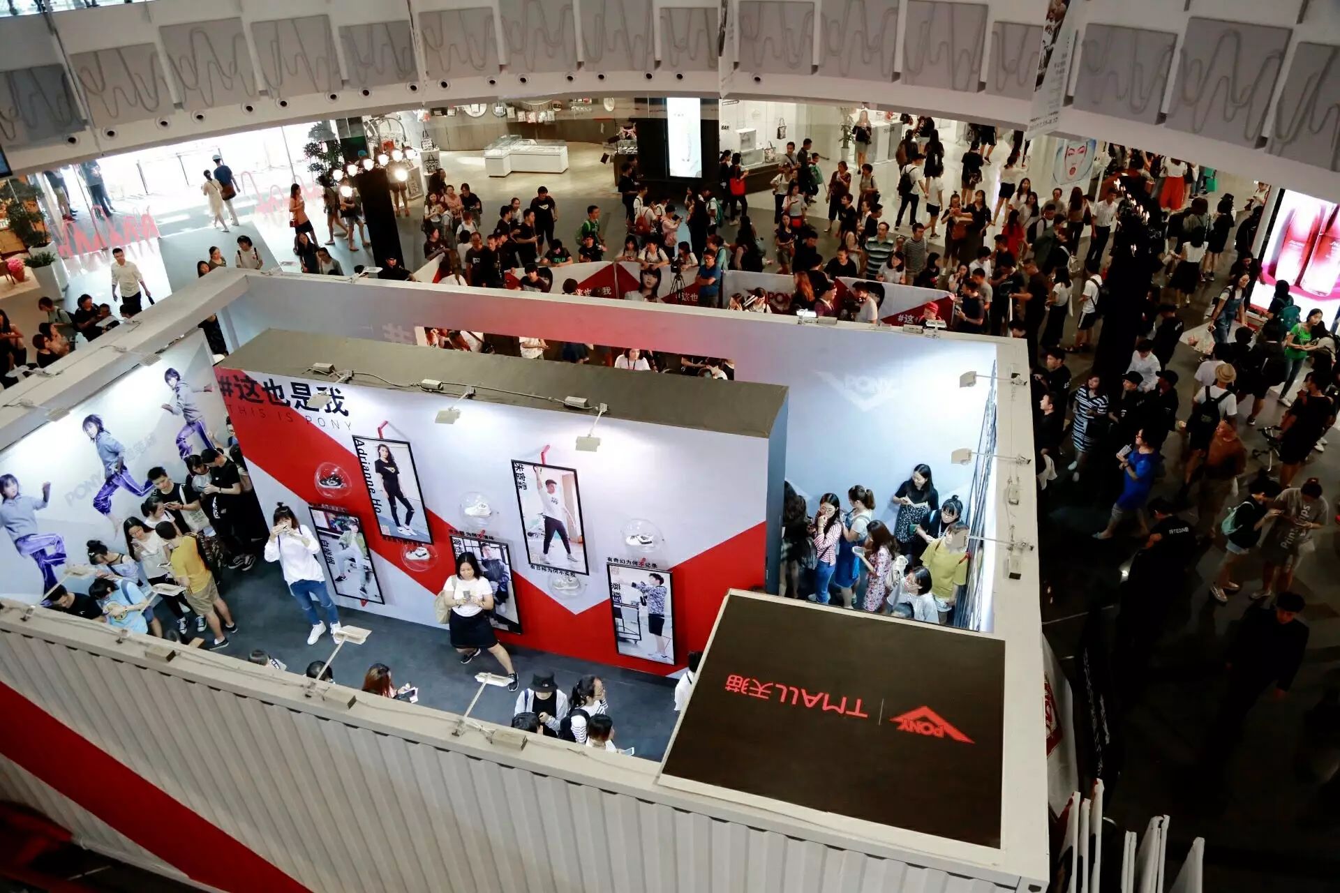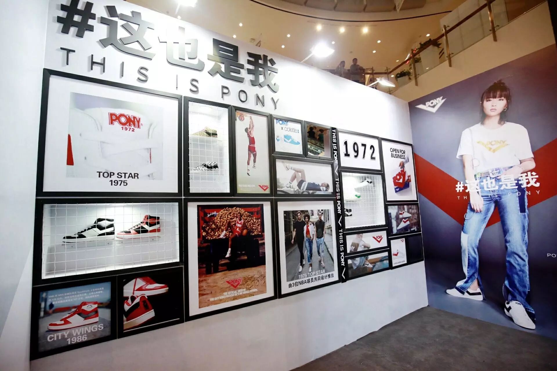 活动当日,集装箱外形的 POP UP STORE 惊现长宁来福士中庭。工业感十足的 PONY BOX 以开放和分享之名,为喜爱 PONY 的潮流人士提供了趣味盎然的线下体验。醒目的历史墙讲述了 PONY 品牌一路走来所铸造的辉煌时刻,典藏鞋款助力一代代体育冠军奋勇争胜,亦开启了一个街头文化复兴的时代。