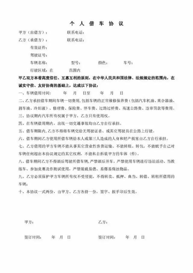 如果非要借车,一定要签订一份协议!