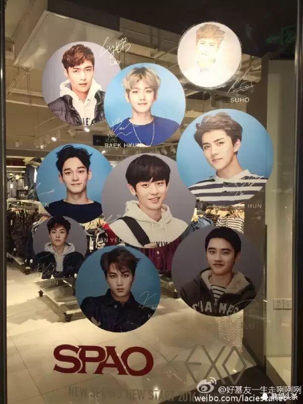 SPAO去年进驻台湾,代言人Super Junior(SJ)曾来台湾宣传,人潮挤爆忠孝东路。当时粉丝为获得签名资格,卯足全力购买商品。日前西门店开始筹备,代言人换成SJ同门师弟EXO,引发两派粉丝在SPAO粉丝页上笔战。SPAO为此在脸书上特别公告更换代言人的原因,由于SJ陆续当兵,因此才让师弟接棒,绝非SJ过气才换人。