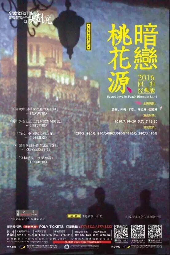 《暗恋桃花源》是"表演工作坊"的镇团之宝,该剧1986年在台湾首演,引发观演狂潮。此后又产生了多个版本。1991年复排巡演,奠定国际声誉。1992年,电影版《暗恋桃花源》获得柏林电影节银熊奖等众多奖项。