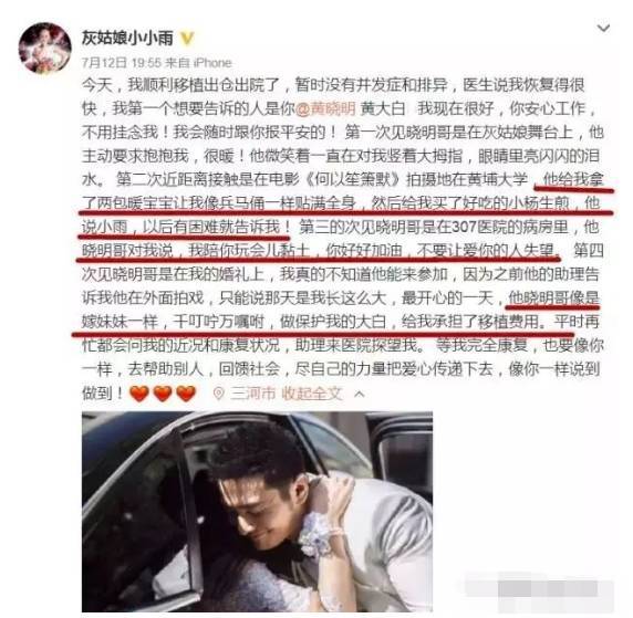 一直以来,黄晓明都关心着小雨的病情,并用尽自己的能力去帮助她,
