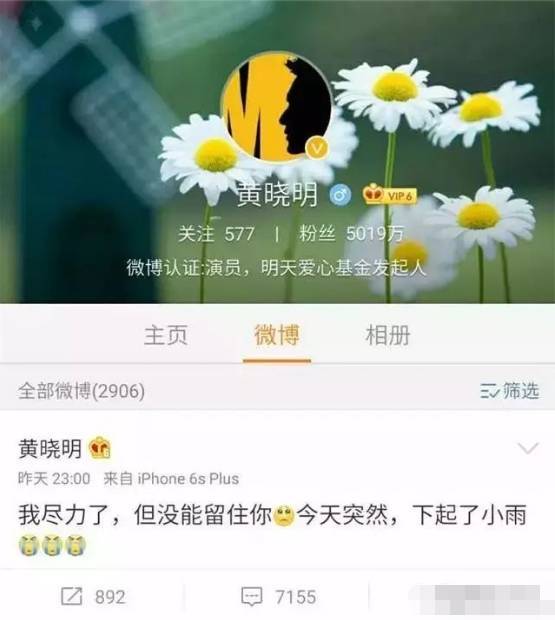 黄晓明在微博发文: