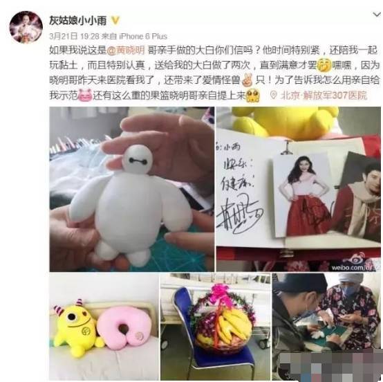 就算工作繁忙,黄晓明也会抽空去医院看望小雨,还为她亲手做了大白。