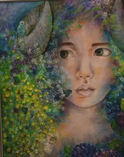 可是人家也46岁了,有皱纹不是很正常吗?况且静香姐姐的多才多艺确实让人服气。她1994年开始就替自己的唱片做监制,作词,从歌手变成全面的音乐人。之后她又转型为画家、珠宝设计师。(前三张我还以为是同一张画,结果仔细看竟然不一样)