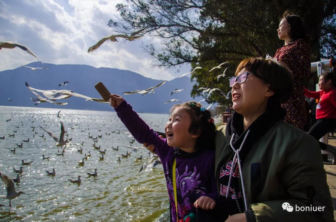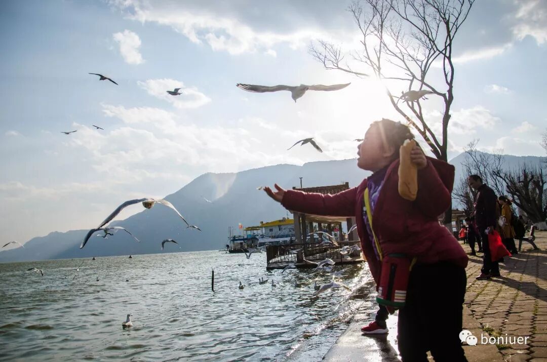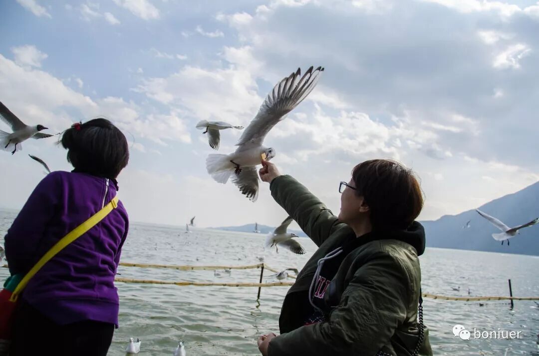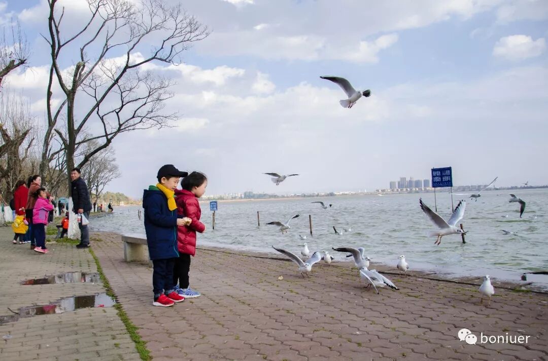 记得网上看到的一篇文章曾经写到过昆明的红嘴鸥,据说最早的一批红嘴鸥出现在1985年,然后就是长达30多年的坚守。尽管当时人们的环保意识远没有今天那么强烈,但是海鸥飞抵一座城市,成为这座城市的外来户,还是引起了全国各地媒体的关注。看到这里,不禁心中感叹,当年那位海鸥中的带头大哥,是怎样的英明神武,就如同人类中的哥伦布发现了新大陆,带领众海鸥迈向了新生活。