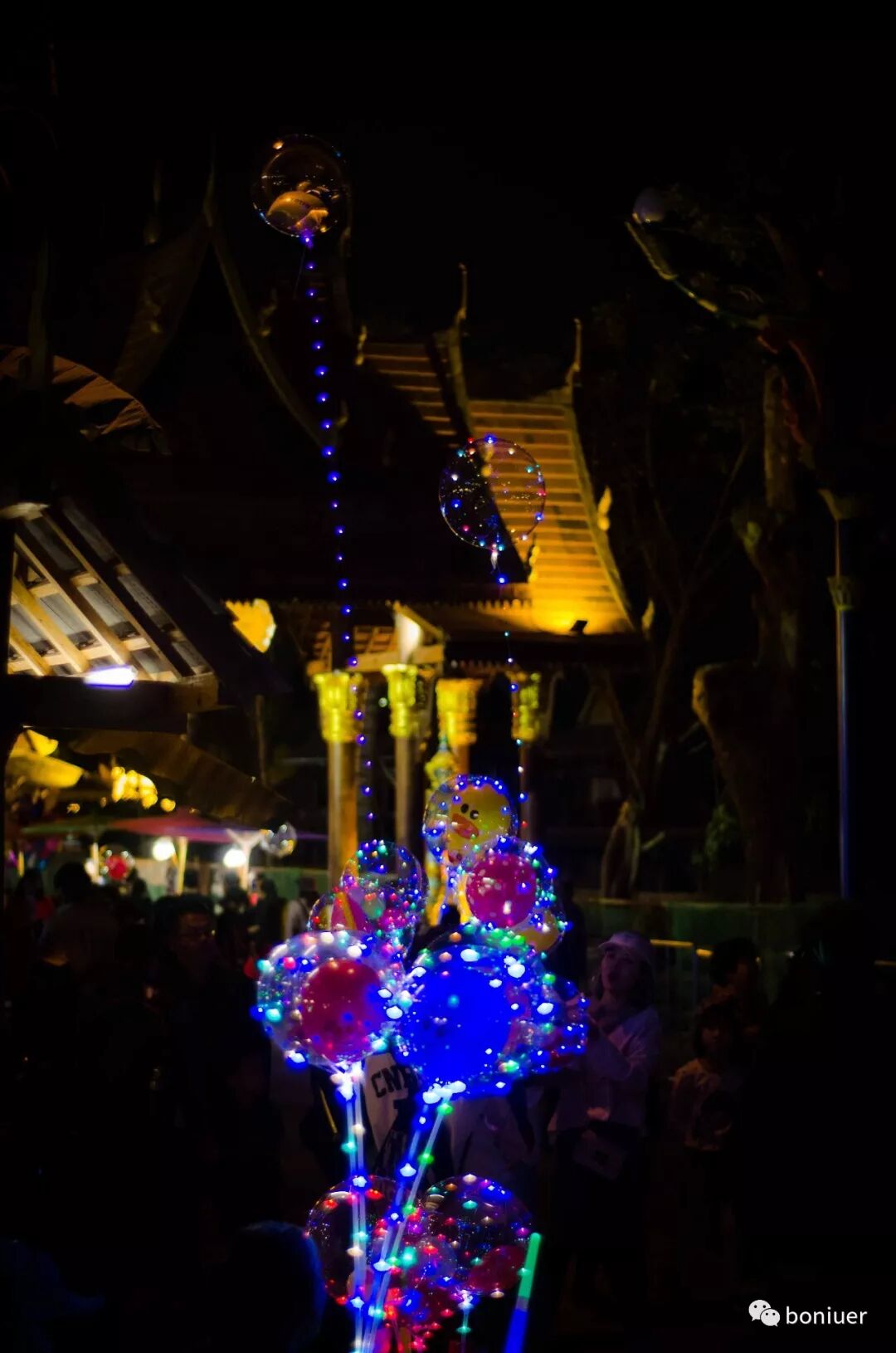 如果说白日的曼听公园是展现了所有细节的美,那么别急,黑夜中的她却又是另一番景色,那种朦胧中又隐藏着神秘的美丽绝对是你白天所体会不到的。