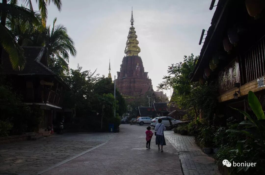 将要与西双版纳告别的清晨,本应睡个懒觉以便在后续旅程中攒足体力的我们,却又按捺不住内心的激动再次来到了的大金塔前。