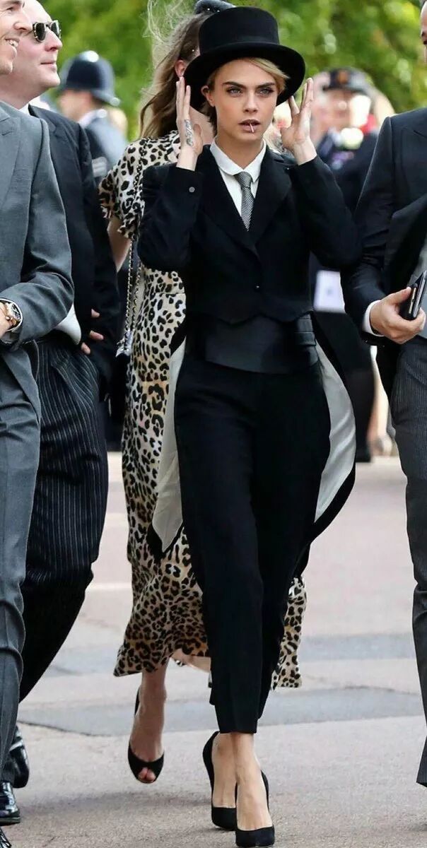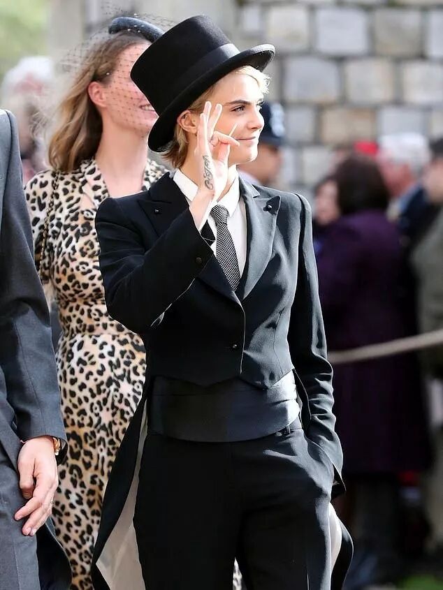 英国模特、演员卡拉·迪瓦伊(Cara Delevingne),在着装上反其道而行,她用一个男性化的装扮亮相,但依旧惊艳,被时尚媒体评为当天最佳着装。