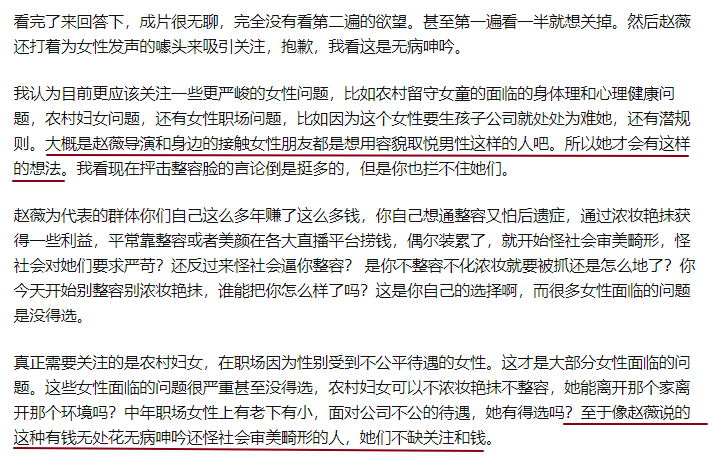 只字不提剧中所要表达的女性困境,三言两语一味地“消费观众”、“蹭热度”、“吃女权红利”。