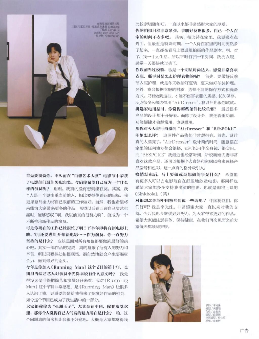 李光洙芭莎杂志采访:永远在感恩rm给他带来的一切,也非常感谢中国粉丝对他的支持和喜爱