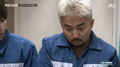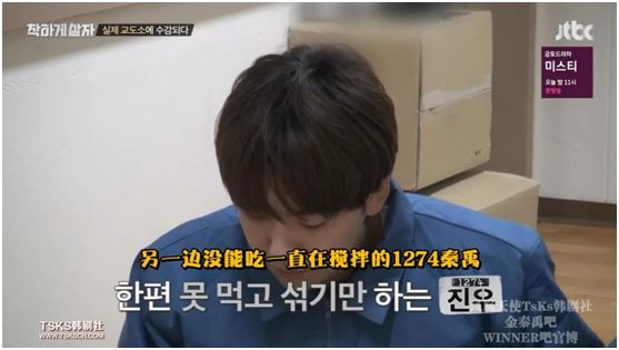 之后朴社长因为牢房内年纪最小的金秦禹早点名时报错了数,就在牢房里对金秦禹远远“以眼杀人”,吓得金秦禹立刻缩成了小白兔,
