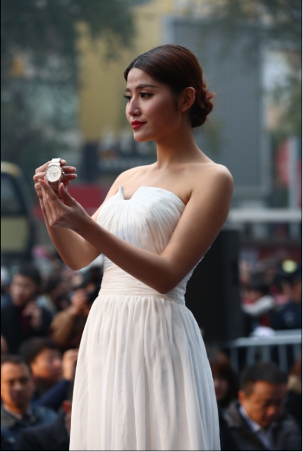 靓丽女主持手上佩戴的是摄影师系列LA8366,知性典雅,深邃恬美。