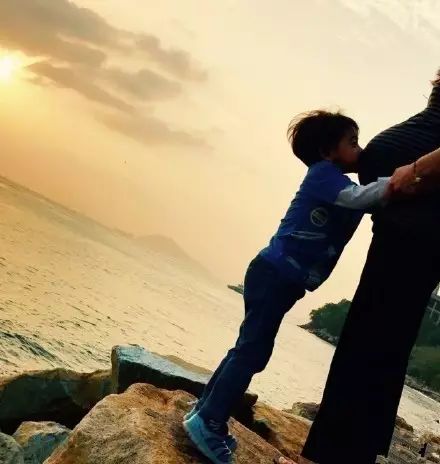 郭晶晶生下一女,还晒出一张儿子亲吻女儿的照片。